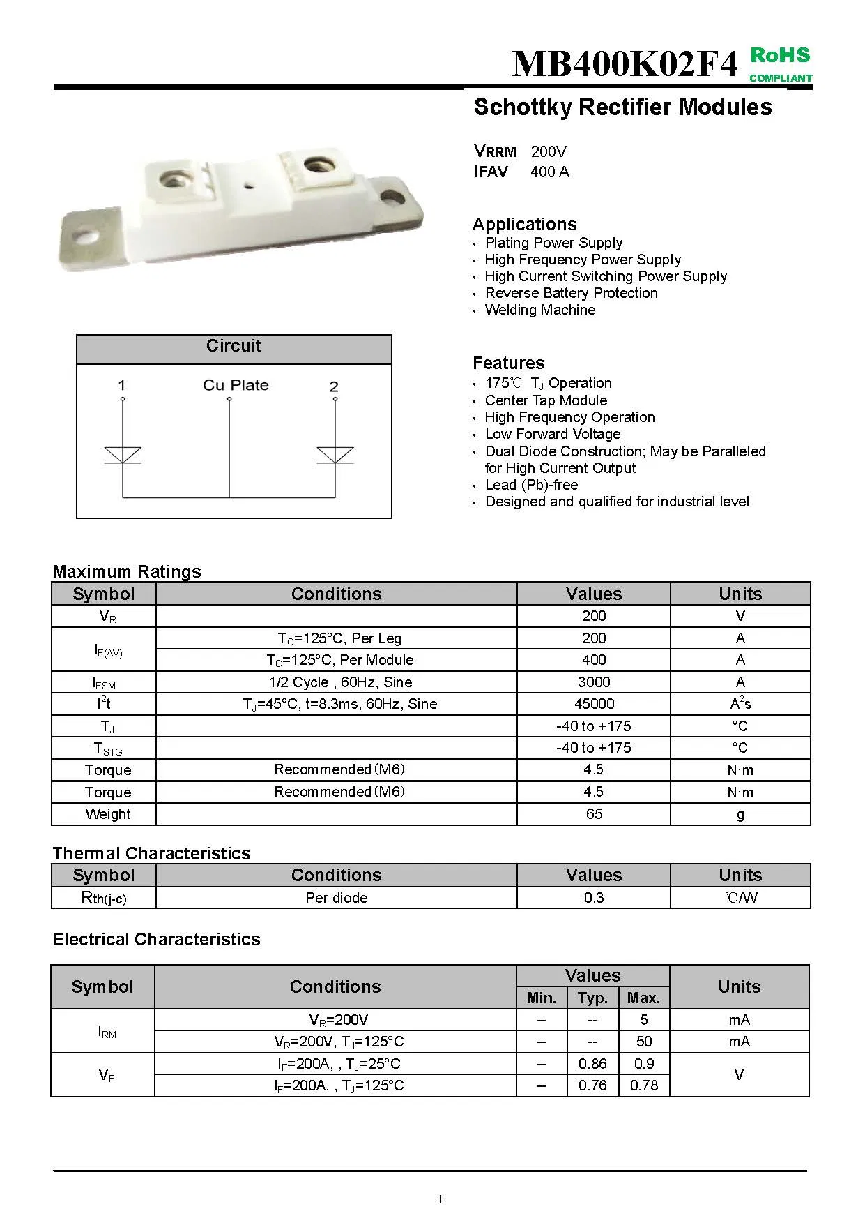 Ratings: VRRM 200V | IFAV 400A