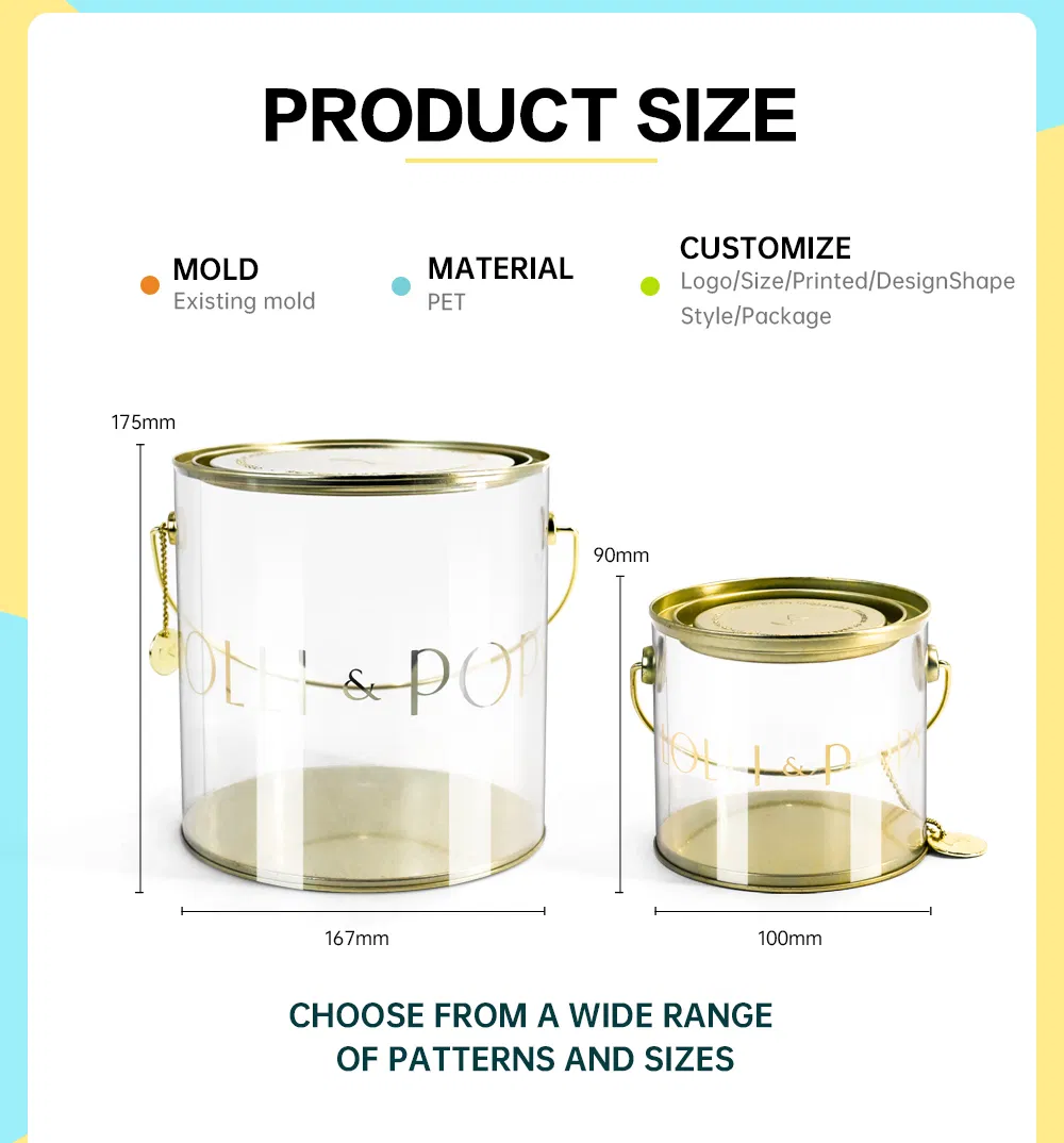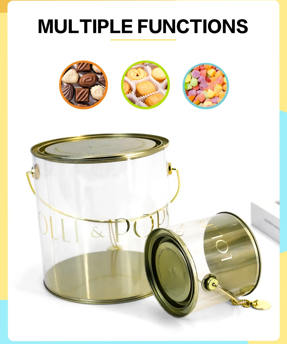 Custom Logo Reusable Metal Handled Clear Bucket for Candies/Snacks/Nuts